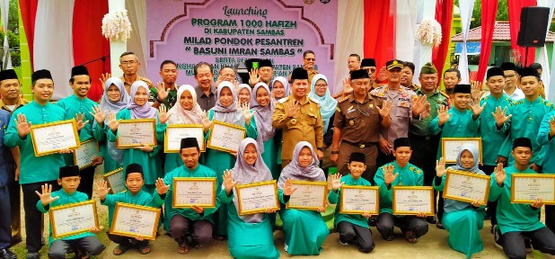 Penghargaan diserahkan Bupati Sambas Satono kepada kafilah pada Launching Program 1000 Hafizh di Pondok Pesantren Muhammad Basiuni Imran (PPMBI) Sambas.