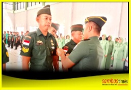 Dandim 1208/Sambas Letkol Czi Priyo Hindrarto mengucapkan selamat kepada kepada anggota yang memperoleh kenaikan pangkat setingkat lebih tinggi.