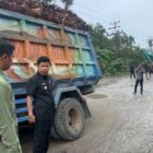Bupati Sambas Satono berang dan mendatangi Truk pengangkut TBS Sawit Over Load yang amblas di jalan pekerjaan pemerintah di Desa Dalam Kaum, Kecamatan Sambas.