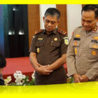 Bupati Sambas, Satono menandatangani Memorandum of Understanding (MoU) antara kepala daerah dengan Aparat Penegak Hukum (APH) tingkat provinsi, kabupaten/kota se-Kalbar, Jumat (17/3/2023).