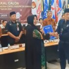 Ketua PKB Kabupaten Sambas Juliarti Djuhardi Alwi beserta pengurus menyerahkan dokumen syarat Bakal Calon Legislatif (Bacaleg) kepada Komisi Pemilihan Umum (KPU) Kabupaten Sambas, Sabtu (13/5/2023).