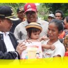Bupati Sambas Satono mendampingi Gubernur Kalbar Sutarmidji menyerahkan bantuan terdampak banjir di Desa Sijang, Kecamatan Galing, Kabupaten Sambas, Minggu (12/2/2023).