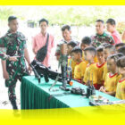 Personel Kompi Senapan (Kipan) B Yonif 645 Garda Tama Yudha (Gty) menerima kunjungan guru dan siswa sekolah Asoka Widya Pemangkat, Kabupaten Sambas.
